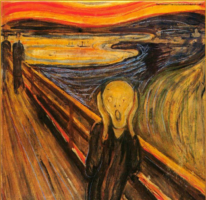 《呐喊》又名称《尖叫》 ,是挪威画家爱德华.蒙克1893年的作品。