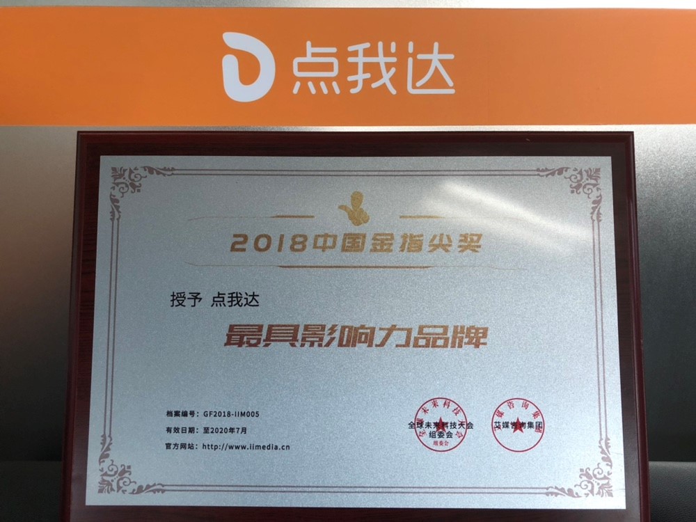 近日,由全球未来科技大会组委会主办,上海市互联网协会、艾媒咨询集团承办的“2018全球未来科技大会”在上海隆重开幕。数千名业界专家、企业家和学界大咖出席了本次会大会。在大会同期举办的“2018中国金指尖奖”颁奖典礼上,点我达凭借其行业的领先地位和影响力,获得了大会颁发的“最具影响力品牌”奖。