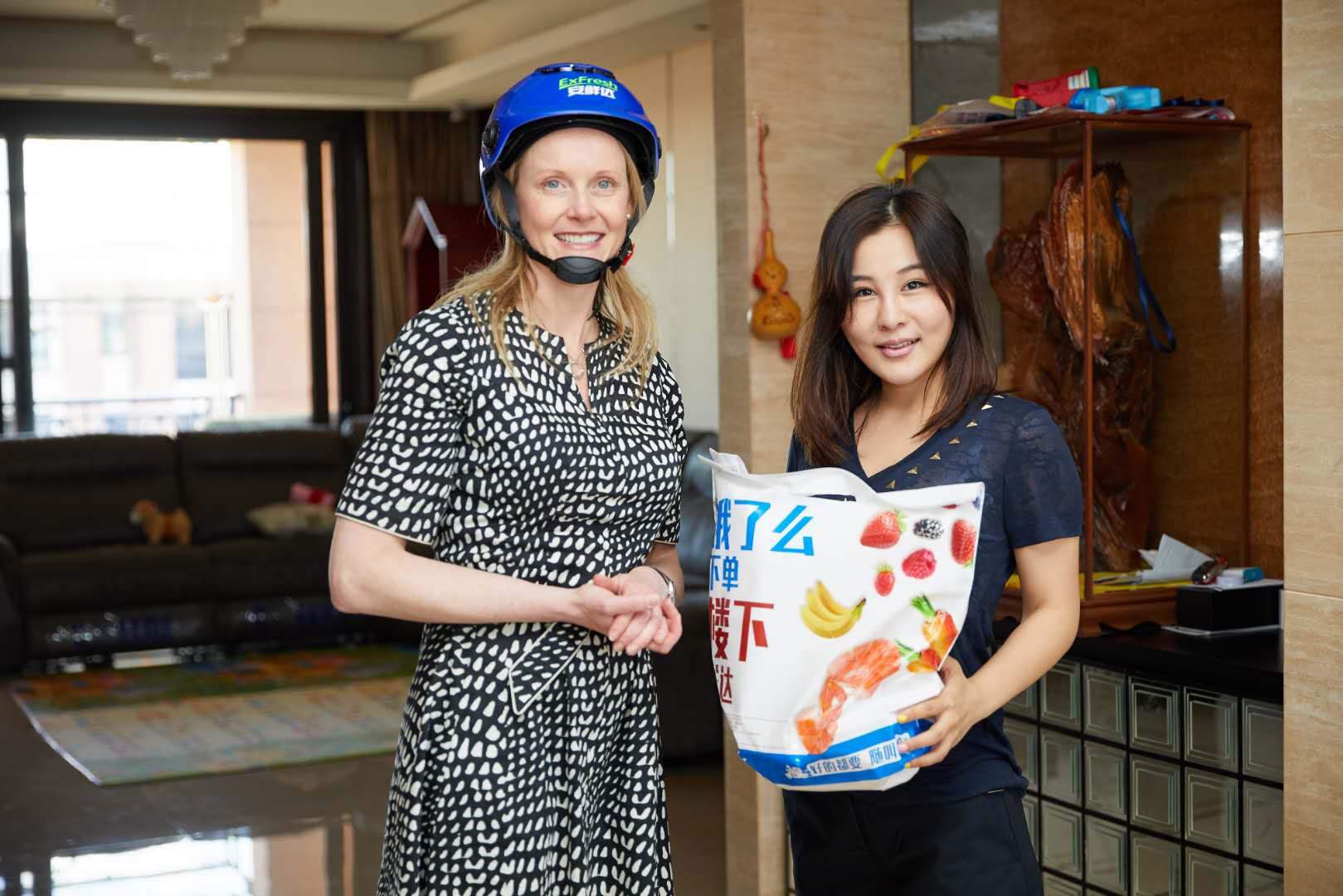 随后,佩戴蓝色头盔的Courtney Sarah女士从安鲜达仙霞仓出发,一小时后即到达收件客户倪小姐家中,完美达成了本次塔斯马尼亚州牛肉和澳橙的超新鲜派送。