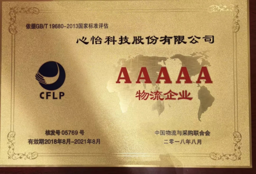 在雷竞技电竞竞猜网 发布的《第二十六批A级物流企业名单》中,心怡科技股份有限公司被认定为国家5A级物流企业,已达到国内物流企业最高标准。