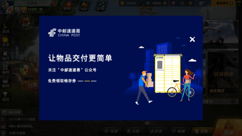 当然,奋斗在一线的快递员们也可以在中邮速递易快递员APP中领取合作游戏礼包,在工作之余也能尽情放松哦!与此同时,北京、上海、广州、深圳、成都等一线城市的中邮速递易智能快递柜柜屏上也将出现《王牌战争》相关内容,让现实世界与虚拟世界打破次元壁,给玩家和用户带来不一样的感受!