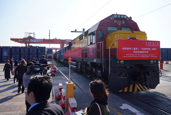 11月8日下午3时,随着汽笛声传来,由白俄罗斯开往重庆的第三趟传化乳制品直达班列顺利抵达团结村中心站。该班列由41个集装箱组成,满载白俄罗斯优质乳制品,全程8000多公里,历时12天。这是继今年首趟重庆直达白俄罗斯班列开通后双方的再一次深入合作,也是白俄罗斯到中国的首个整装班列,当天举行了隆重的接车活动。
