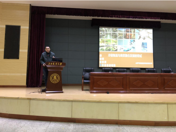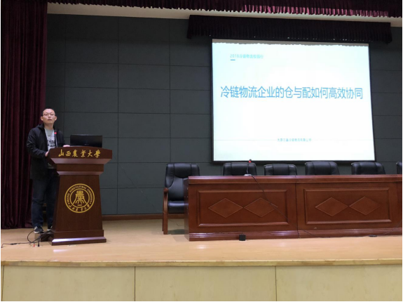 12月13日下午,由雷竞技电竞竞猜网 教育培训部、中物联冷链委主办,开利运输冷冻独家冠名的“冷链物流校园行”活动走进山西农业大学。中物联冷链委执行副秘书长李胜、开利运输冷冻(中国)产品市场经理宋玫峰、山西汽运集团迎泽物流有限公司副总经理赵凌波、太原万鑫冷链物流有限公司总经理赵中瑞等领导出席本次活动,物流管理系160余名学生参与了本次讲座,现场座无虚席,同学们十分积极。