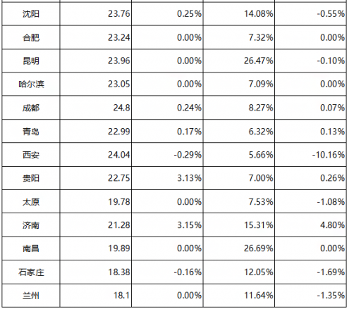 表:全国30个城市平均租金和空置率一览表