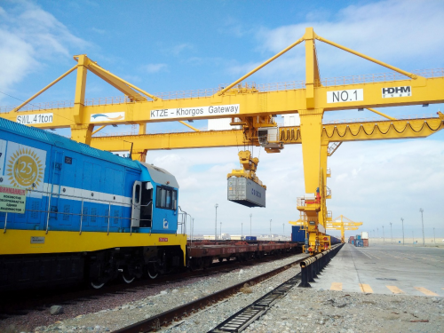 在哈萨克斯坦,霍尔果斯拥有一个5,740公顷的经济特区,其中包括霍尔果斯“干港”。这个铁路转运和集散中心于2015年秋季迎来了第一批列车。到2017年,其3台黄色龙门起重机每年处理10万个20英尺标准集装箱。