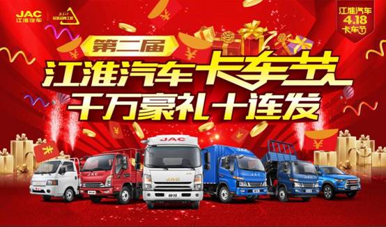 对于喜爱网购的“剁手党”来说,双11、双12绝对不会错过。而对于卡友们来说,4月18日将注定成为他们的狂欢节。继去年首届4.18江淮汽车卡车节圆满举行后,第二届江淮汽车卡车节将以千万豪礼十连发的姿态再次来袭。