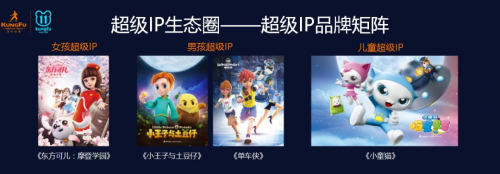 通过十一年的潜心服务,功夫动漫打造了数量惊人的超级IP品牌矩阵,其中包括女孩超级IP《东方可儿》,男孩超级IP《小王子与土豆仔》、《单车侠》,新零售超级IP《笨笨鼠》,教育超级IP《汉字侠》,城市超级IP《狮来运转》、《三星堆·荣耀觉醒》、产业超级IP《三只松鼠》、《超级伊仔》等等数十个超级IP。