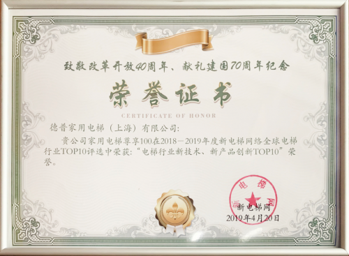 在此次会议上,德普家用电梯尊享100系列以其独特的产品技术创新优势荣获“电梯行业新技术、新产品创新奖。