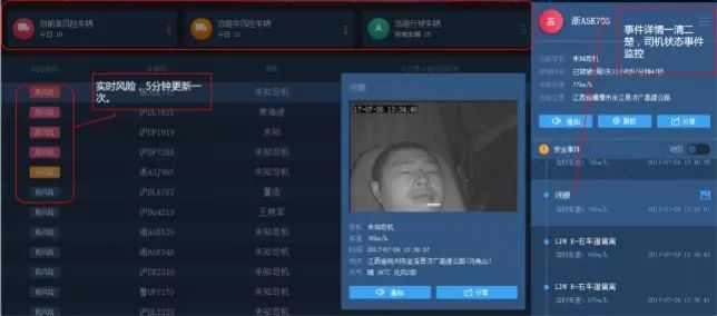 1、 AI算法实时自动计算车队在途行驶车辆安全状况全局,可以实时预警,发现异常。