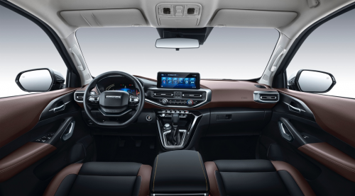 内饰方面,长安凯程F70采用源于法国标致雪铁龙集团(PSA)独创的i-Cockpit唯我座舱设计创意,整体中控布局向驾驶者偏移,利于操控。车内匹配悬浮式液晶触控中控屏及液晶数码仪表盘,金属物理按键更是与兰博基尼等跑车同款。卡丁车方向盘,握感舒适,不遮挡仪表盘,两侧多功能控制区域以合理布局的按键和滚轮设计呈现。由于车体宽近2米,长安凯程F70匹配的皮质座椅宽大,采用航空头灯舱座椅的人机工程学设计,能够为人体提供更多的贴合和包裹面积,对腰部、肩部及身体两侧的支撑更为充分,乘坐舒适性堪称满分。