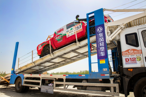 如果说,穿越沙漠、戈壁、河床的9个艰苦赛段是车手和车队的正面战场。那么,在车手身后,一场关于后勤保障的战役也在同步开展。就在环塔开赛的前一周,两辆全副武装的东风多利卡D12作为郑州日产车队的“先锋部队”,载着车队的赛车和比赛物资,从郑州向着大赛营地塔克拉玛干挺进,率先打响了这场后勤保障的战役。