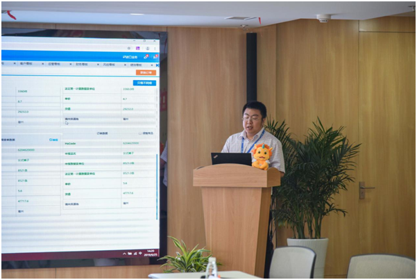 随后,产品技术中心总监卞智伟向与会人员现场展示了贸互达系统的技术架构,演示了“贸互达”平台全流程操作,包括物流全程可视化,收结汇财务系统实时对接等。并结合实地验厂、物流监装微信小程序,详细介绍了事前、事中、事后的风控策略以及江苏跨境基于企业工商信息、税务信息、关联信息、经营信息等十余个维度的风险控制模型。他说道,我们的贸互达系统打通了关检汇税、银行、保险、证券、投资、供应商、电商平台等供应链条上的各个节点,做到全流程在线,实时可追踪。