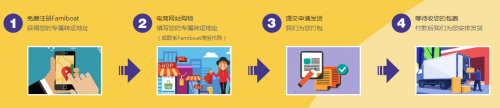 登陆Famiboat网站进行注册账号,就可以在“会员中心”里看到Famiboat位于上海的转运仓地址和你专属的会员标识码,然后只需要在购物填写地址处填写仓库地址加上你的标识码,寄到Famiboat的仓库,等所有包裹到达后申请发货,填写你的海外地址并付款就好啦。