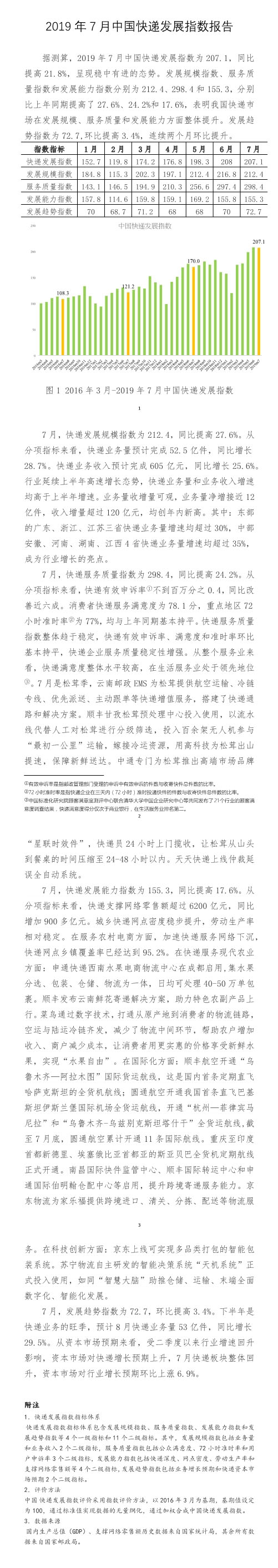 国家邮政局:2019年7月中国快递发展指数报告