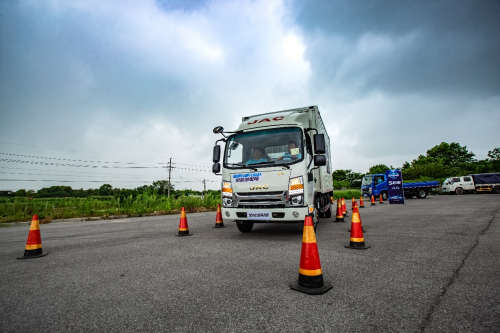 嘉兴站的活动现场,正好遇上了台风天气,风雨无阻,现场赛事依然激情似火。帅铃全能城配版与两款市场同类型展开现场PK,在总质量4.5T工况下,经过S弯道、颠簸路面、直线加速等环节,100公里城郊道路的比赛,帅铃全能城配版采用车联网后台与五环仪表读数,分别测算综合工况油耗。最终由夏本增驾驶搭载安徽康明斯152马力的帅铃全能城配版以11.2L的好成绩夺得冠军,百公里油耗比市场同类车型低1升。