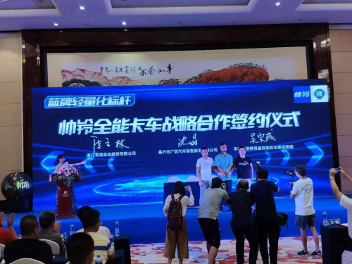 帅铃全能城配版的出色表现也赢得了城配物流企业的青睐,活动现场,浙江青莲食品股份有限公司、百家欣水果等单位与嘉兴广信帅铃经销商签订购车协议,采购帅铃全能城配版用于城配运输。