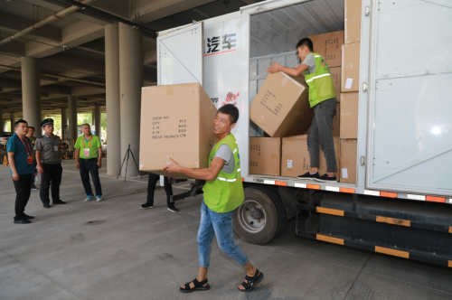 (甲马智慧物联有限公司工作人员现场搬卸本次二青会开幕式所需物资)