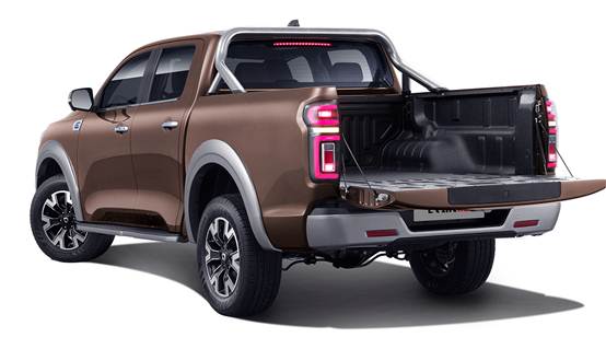 长城炮货箱尺寸为1520*1520*538mm,标配阻尼后尾门、隐藏式踏板、坡道梯卡槽,可选装不同形式的货箱盖。
