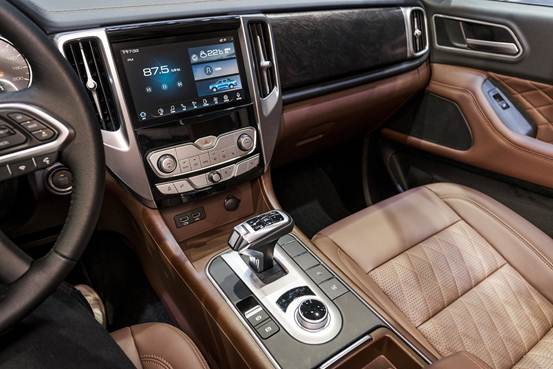 作为全球化乘用大皮卡,长城炮乘用皮卡拥有诸多乘用化配置,该车标配无钥匙进入+一键启动,多功能真皮方向盘配备换挡拨片,9英寸触摸屏、真皮座椅、前排座椅加热、自动空调、空调后出风口、可开启天窗、专属香氛等乘用化配置一应俱全。