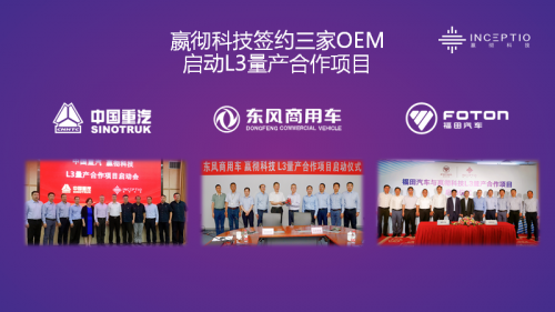 嬴彻科技与三家主机厂签约量产合作项目