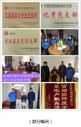 2016年1月1日,欧泰印机正式成立党支部,现已有党员5名,预备发展对象3名,积极分子3名,公司在生产经营的同时还不忘履行社会责任,积极扶贫帮困,曾多次获得党组织的表彰以及群众的感谢。
