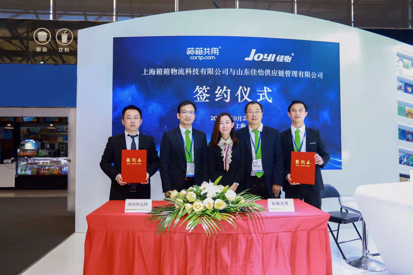 山东佳怡供应链管理有限公司总经理贺小轩与箱箱共用集团副总裁王金成现场签约