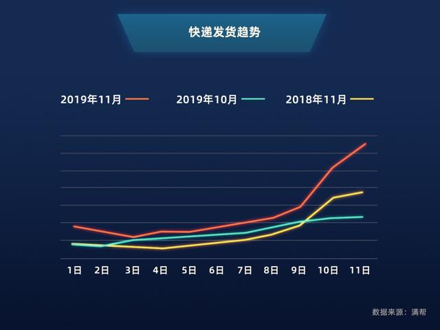 "双十一"全民狂欢,共同参与了一项数千亿的大项目。奋战"双十一",和消费者、电商同样无眠的,还有卡车司机、快递员,以及在运输、仓储上面临极大考验的快递公司。而在快递公司的背后,有满帮这样的运力平台"消化"溢出订单,平台上集结的数百万社会运力时刻准备着承运包裹,助力消费者更快"收货"。满帮大数据显示,2019年"双十一"当天,全国快递类货运发货量是10月11日的3倍,较11月10日上涨28%。