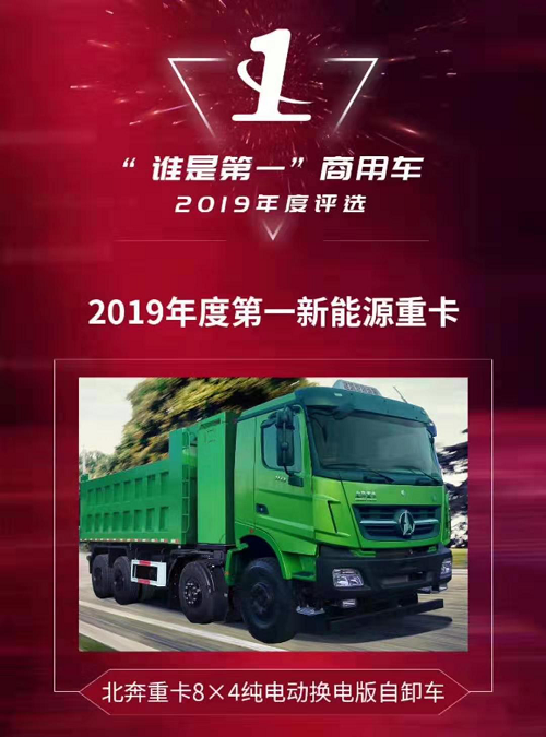 2019年度第一新能源重卡:北奔重卡8×4纯电动换电版自卸车