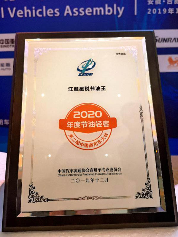 再获权威协会认证,江淮星锐荣膺“2020年度节油奖”
