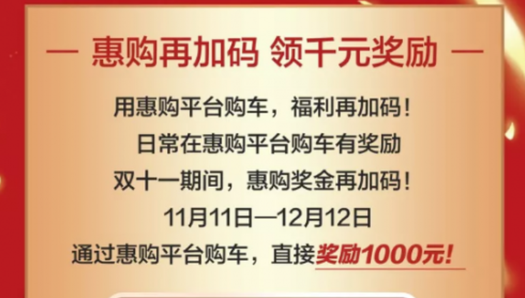 惠购平台再加码 线上购车再奖1000元