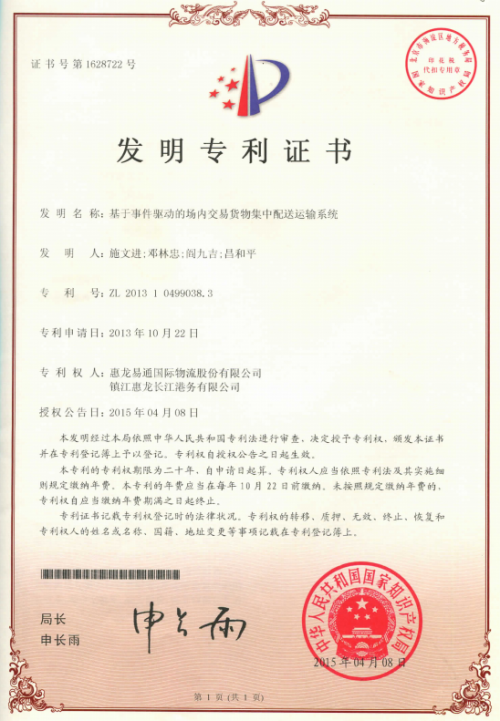 2013年,在交通运输部、财政部、江苏省政府等相关部门的创新支持下,惠龙易通开始无车无船货运在线交易,网络货运整个流程的模式捆绑技术取得了多项发明专利。