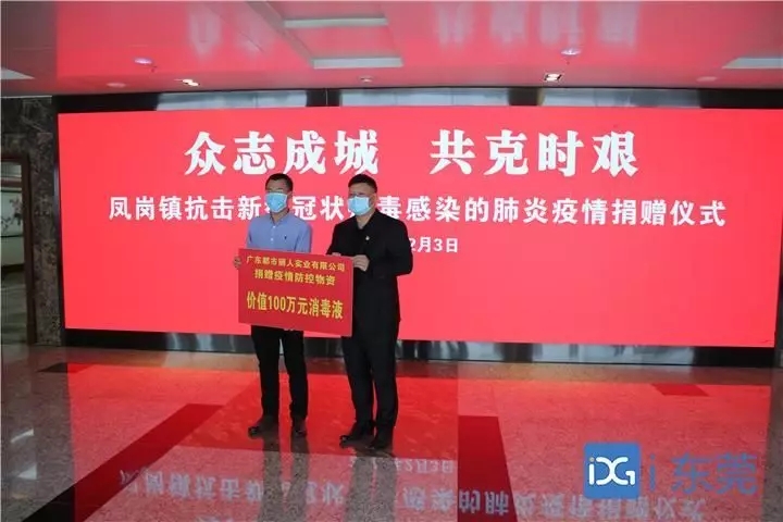 2月3日,李文锋代表集团向凤岗镇政府捐赠了价值100万元的消毒液,这些物资将源源不断地涌向抗击疫情前线,帮助大家打赢这场没有硝烟的疫情阻击战。