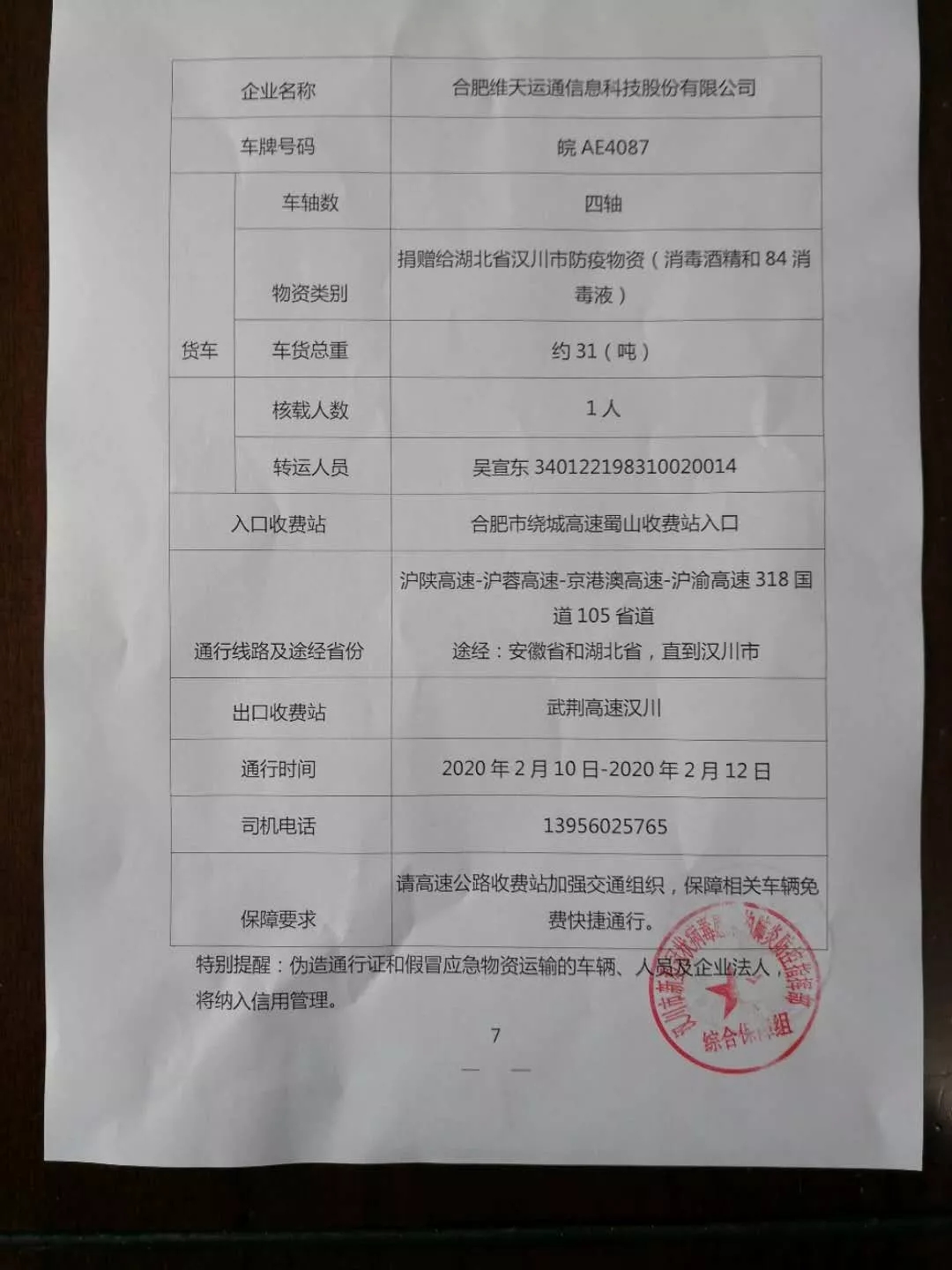 运输车辆就近从速调配,紧急驰援湖北省,发送至湖北省汉川市新冠肺炎防控指挥部刁东仓库,主要用于汉川市抗击新型冠状病毒感染肺炎。
