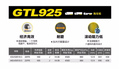 据记者了解,佳通445/45R19.5规格的GTL925轮胎采用最新科研技术,目前市场主流产品承载能力为4.5吨,佳通单胎承载力高达5吨,标载情况下可以充分满足运输需求。此外,GTL925轮胎作为宽基胎,加大了胎面与地面接触面积,更耐磨;其花纹采用低滚阻配方配合六道纵向直沟设计,可以有效降低阻力,达到节油目的。