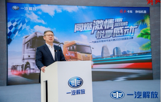 2020年12月6日,“同燃激情,悅享感动——一汽解放车联网节油大赛全国总决赛”激情燃动。 一汽集团总经理助理、一汽解放董事长、党委书记胡汉杰、一汽解放副总经理、青岛整车事业部总经理王瑞健、一汽解放副总经理、青岛整车事业部党委书记尚兴武,一汽解放总经理助理、销售公司总经理党委书记王志才等领导莅临活动现场,与晋级决赛的12位卡友、广大媒体以及各界伙伴相约海南省琼海市,共襄盛举,共鉴璀璨。最终,来自河南的吴前方和来自山西的刘康以百公里26.90升油和25.93升油的成绩,分获J7—13L发动机组别和JH6—11L发动机组别冠军,成为2020年度最为闪耀的卡友之星!