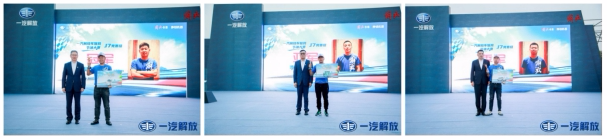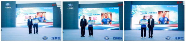 竞逐,是为了最高荣耀的加冕;成长,是向着更高梦想的攀登。在随后的颁奖仪式上,一汽解放 胡汉杰、王瑞健、尚兴武、王志才、张兵、黄南翔分别向本次赛事的J7和JH6组别冠军:吴前方、刘康;亚军:李刚、姚光强;季军:郑威龙、石兵文颁奖。在所有选手、来宾的注视下,获奖选手沿着一汽解放以高可靠筑起的安全之路、高舒适筑起的智能之路、高效率筑起的节油之路,共同登顶,登高望远,启迪未来!