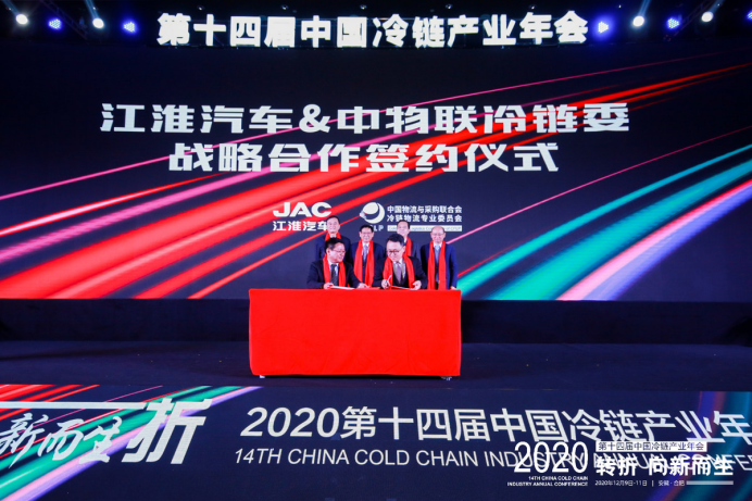 江淮冷藏车在行业中已久负盛名,向来以品质可靠、服务完善、一体化上装、性价比高等优势受到大量冷链企业及个人用户认可,为冷链行业整体发展提供了强大的技术保障。此次冷链产业年会上,为了将技术领先、品质可靠的江淮冷藏车介绍给更多冷链物流企业,也为了收集行业更多冷链物流企业对装备及技术的需求,进一步推动我国冷藏车生产工艺迭代升级,中物联冷链委与江淮汽车正式签署战略合作协议,共同汇集行业资源,打造更加符合产业未来发展的创新技术及车辆。