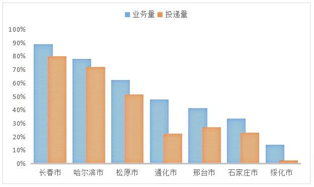 部分城市近期快递业务量、投递量变化趋势