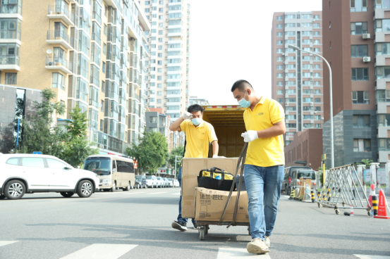 末端方面,配送人员严格执行“无接触配送”,大件配送员持核酸检测报告或疫苗接种单,并佩戴好口罩、手套、鞋套入户送装。
