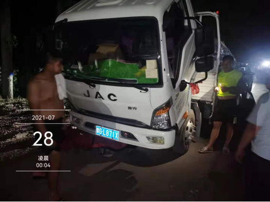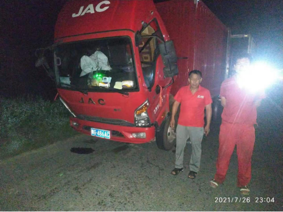 7月28日凌晨1点,江淮轻卡河南新乡新裕服务站接到救援电话,一辆为新乡受灾群众运送救援物资的车辆发生故障,车辆不发电。根据救援电话的故障描述,新乡新裕服务站维修救援人员判断可能是车辆线束受损或发动机故障。江淮轻卡新乡新裕服务站维修救援人员立即带上相关配件赶往现场,仔细检查后发现故障原因与电话里判断的一致。于是,经过紧急维修后,故障排除,物资运输车恢复正常。