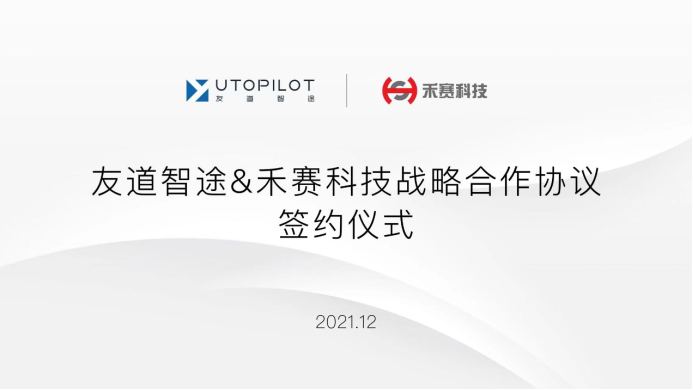 2021年12月15日,友道智途与禾赛科技正式签署全面战略合作框架协议,双方将在未来长期合作的基础上,瞄准自动驾驶技术研发迭代、智慧交通技术跨越式发展、智慧物流服务规模化等具体方向,拓宽合作领域、提升合作水平,实现互利共赢、协同发展。向万亿级商用车自动驾驶赛道进发,友道智途目标在2025年达到万量级的规模。