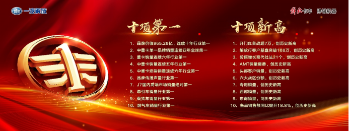 2021年,解放以总销量近44万辆、中重卡近37万辆、中重卡份额23.5%的骄人业绩,再创十项历史新高,勇夺十项行业第一。创下国内重卡六连冠、中重卡五连冠,全球四连冠,品牌价值连续十年行业第一。赢十四五首战“开门红”,再续解放璀璨华章。