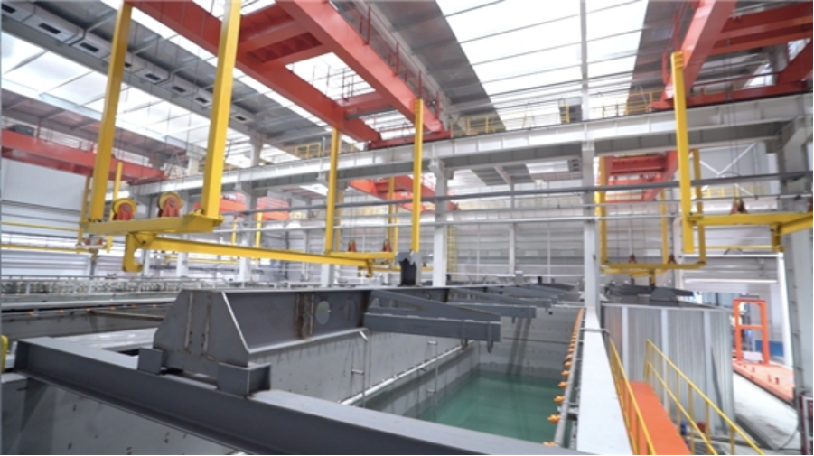 福田雷萨拥有全国专用车行业最大的电泳槽体,共设计12道工序,实现电泳过程全自动运行,过程中还增加了辅助电极、槽口摆动等辅助设施,消除电泳屏蔽,解决行业痛点。