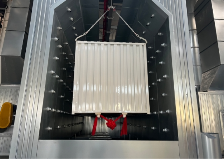 粉末喷涂系统则拥有全国专用车行业最大的喷粉设备——德国瓦格纳尔喷涂设备,可通过积放链输送,工件激光识别,实现往复机自动喷涂。该系统配备大旋风粉末回收装置,粉末自动回收再利用,粉末利用率可达90%以上。该粉房是目前国内最大的通过式粉房,能够喷涂自卸车、厢式车、仓栏车多种产品。人工喷房单独使用时可喷涂满足粉房进出要求的所有产品。