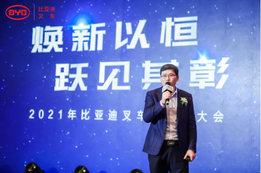 1月6日,以“焕新以恒、跃见其彰”为主题的2021年比亚迪叉车经销商大会在山东济南隆重召开。比亚迪叉车与太阳能事业部总经理毕国忠先生携事业部高层领导,以及全国各地的优秀经销商代表、行业协会、媒体朋友们欢聚一堂,共同回首2021年走过的足迹,并展望新能源叉车的发展蓝图。