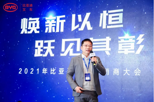 随后比亚迪叉车国内经销总监王岩先生对2021年国内经销情况进行了分享。