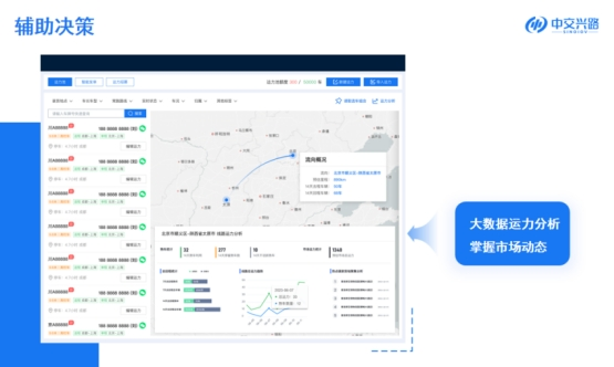 辅助决策。在细分行业结合具体路线、运力流向上提供宏观运力方面的大数据支持,帮助调度员评估外部环境的变化,在定价、运力储备等方面的决策更具科学性。