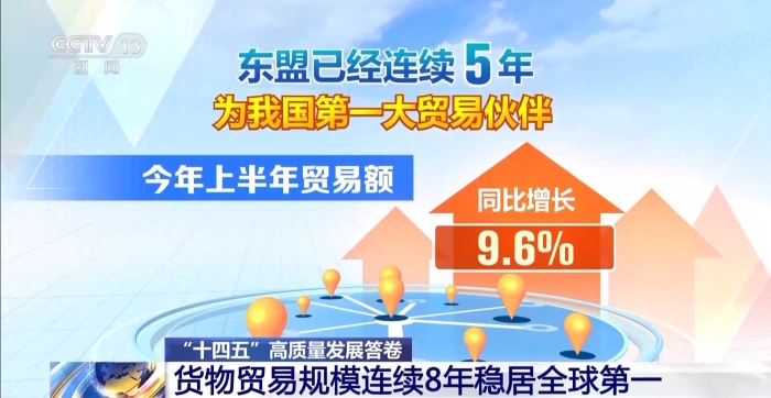 外贸韧性不断增强。面对外部挑战,我国积极拓展多元市场。东盟已经连续5年为我国第一大贸易伙伴,今年上半年贸易额同比增长9.6%。2024年,我国与共建“一带一路”国家贸易比重已经超过了50%。五年来,我国外贸产供链更完备、更灵活,应对风险挑战的能力更强、底气更足。