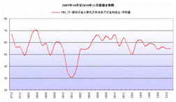 2010年11月,通信设备业,本月为季节性高点。PMI为53.5,比4年来同月平均值49.17转好;PMI三月移动平均为54.6,比几年来本月三月移动平均值53.82转好,(行业PMI领先行业主营业务收入3个月相关系数为0.65。)利润趋势为-2.6,比4年来同月平均值-0.15转差;利润趋势三月移动平均为1.27,自拐点以来合计值为76.8,未来盈利能力较好。通信设备计算机及其他电子设备制造业:短期盈利能力排序为第11,中期盈利能力排序为第2。
