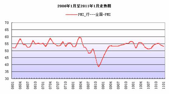 2011年1月中国制造业PMI为52.9,环比值-1.0、同比值-2.9。由于春节恰好在2月初,本月实际开工日已明显不足,但按照工作日计算,本月又不存在春节假期,因此季节性调整无法得到精确的结果,但环比下降是必然的,这种季节性因素会持续存在于2月PMI中。本月季节性因素较为复杂。因为虽然在调查中剔除了工作日和季节因素,但传统的春节来临,依然对制造业生产带来不止一个月的影响。